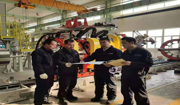 2019年初,公司開始實(shí)施的荊門玲瓏項(xiàng)目,該產(chǎn)品是目前公司自動(dòng)化程度最高的全鋼一次法三鼓成型機(jī),整個(gè)安裝調(diào)試周期工期十分緊張??傃b總調(diào)小組在最后的發(fā)貨日期,帶領(lǐng)組員連續(xù)奮戰(zhàn)18小時(shí),保質(zhì)保量的完成了安裝調(diào)試,發(fā)貨任務(wù)。充分發(fā)揚(yáng)了不怕苦,不怕累的“主人翁”精神。
