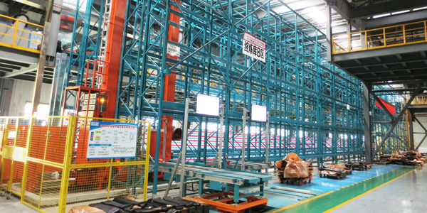 當(dāng)終煉膠碼盤(pán)后,滿托盤(pán)由AGV、提升機(jī)、高空高速穿梭車(chē)、輸送機(jī)輸送到庫(kù)區(qū),堆垛機(jī)完成入庫(kù)。接到出庫(kù)指令后,堆垛機(jī)進(jìn)行出庫(kù)??胀斜P(pán)由碼盤(pán)機(jī)碼盤(pán)并輸送回終煉膠生產(chǎn)車(chē)間待用。