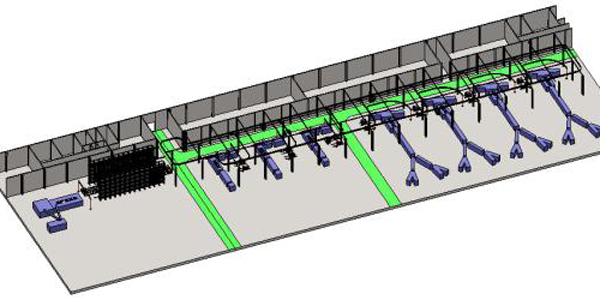 鋼絲簾布卷的儲(chǔ)存至各個(gè)裁斷機(jī)臺(tái)的自動(dòng)輸送。其中存儲(chǔ)采用自動(dòng)立體庫,全自動(dòng)化立體倉(cāng)儲(chǔ)不僅按需求自動(dòng)存取,而且可以與倉(cāng)庫以外的生產(chǎn)環(huán)節(jié)進(jìn)行有機(jī)連接,系統(tǒng)將每個(gè)環(huán)節(jié)引入計(jì)算機(jī)數(shù)字管理,形成計(jì)算機(jī)信息化、條碼化管理,從而達(dá)到全自動(dòng)化控制的目的,使計(jì)算機(jī)管理系統(tǒng)和自動(dòng)化搬運(yùn)設(shè)備聯(lián)合作業(yè)。