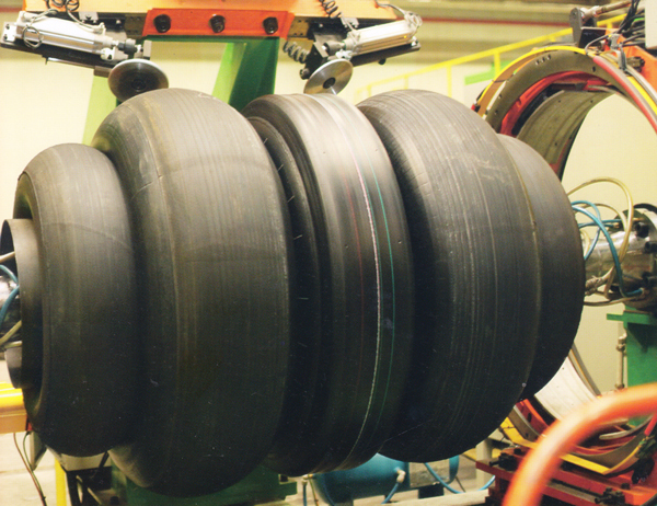 本裝置由左右反包、助推膠囊組合充氣完成反包定型,胎側反包拉伸均勻一致,胎側高度一致性好,胎側反包氣泡少,胎胚外形均勻對稱。 成品輪胎胎側無側鼓,有效保證輪胎動平衡指標值的提升。